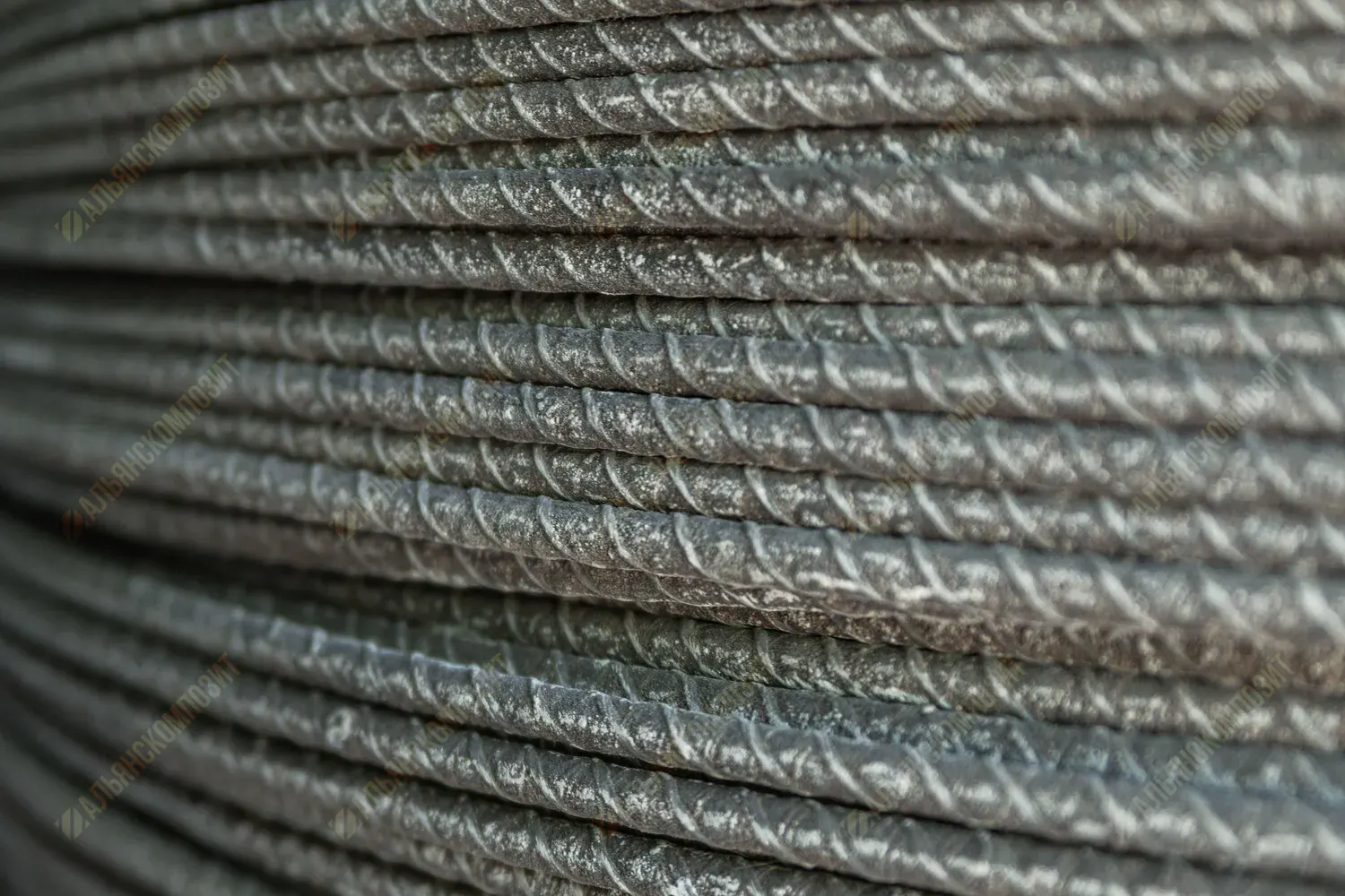Арматура имеет внешнюю навивку из стекловолокна образуя"ребро" арматуры. Дополнительное внешнее ребро придает стержню периодический профиль, создает анкеровку в бетоне и увеличивает поверхность арматуры, что повышает сцепление стержня с бетоном.